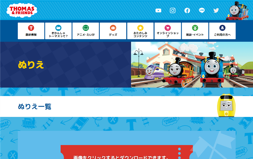 公式サイトで提供されている高品質な「きかんしゃトーマス」のぬりえなので楽しめます。